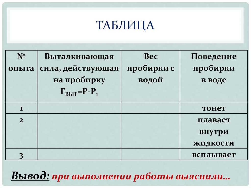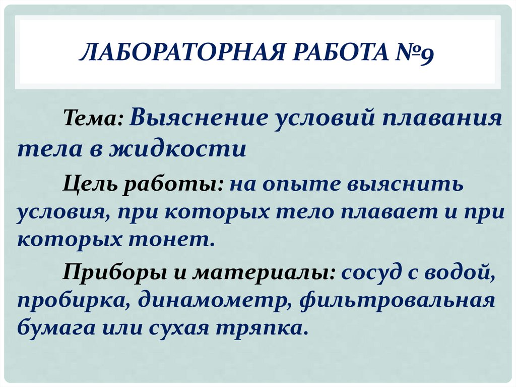«Выяснение условий плавания тела в жидкости». Лабораторная работа