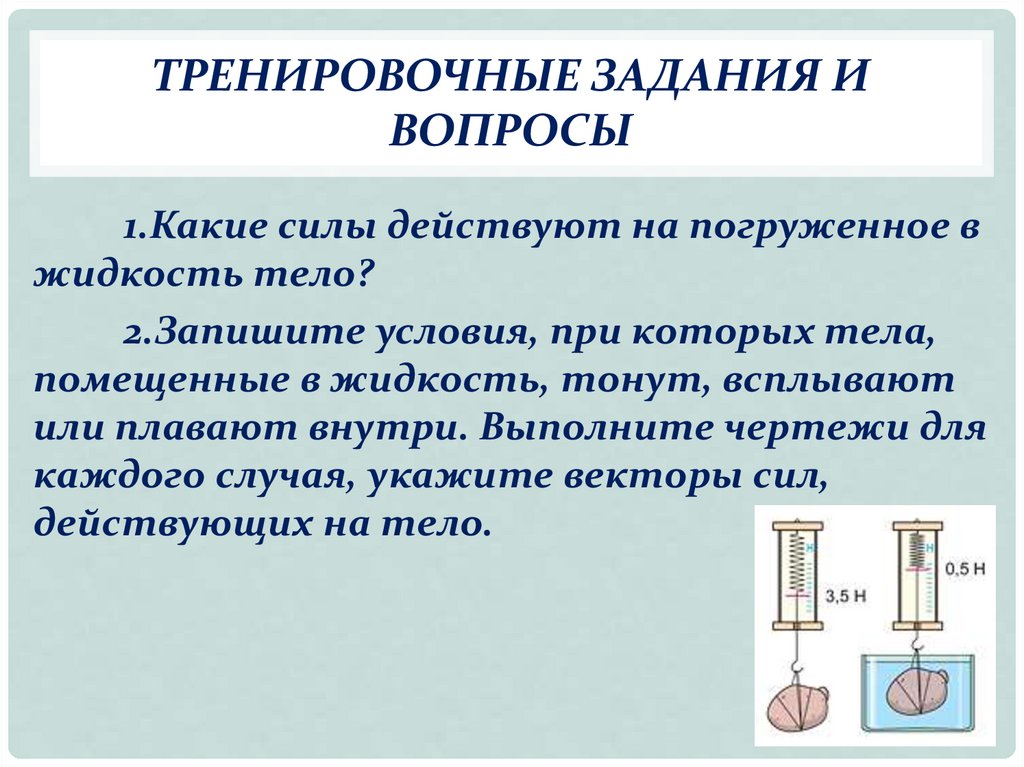 Выяснение условий плавания тел в жидкости. Физика. 7 класс