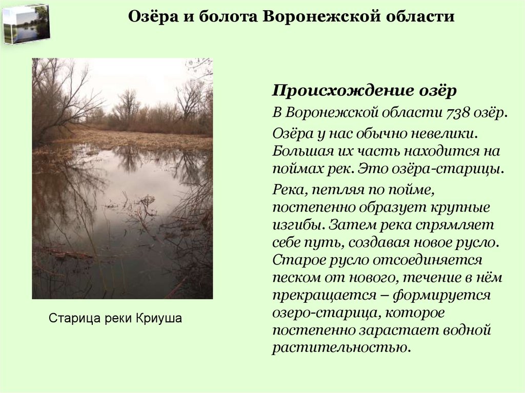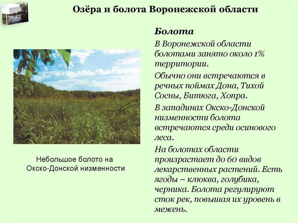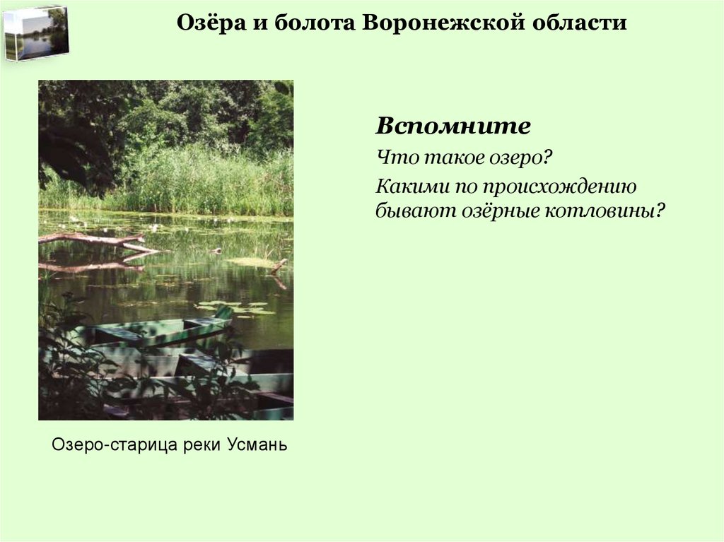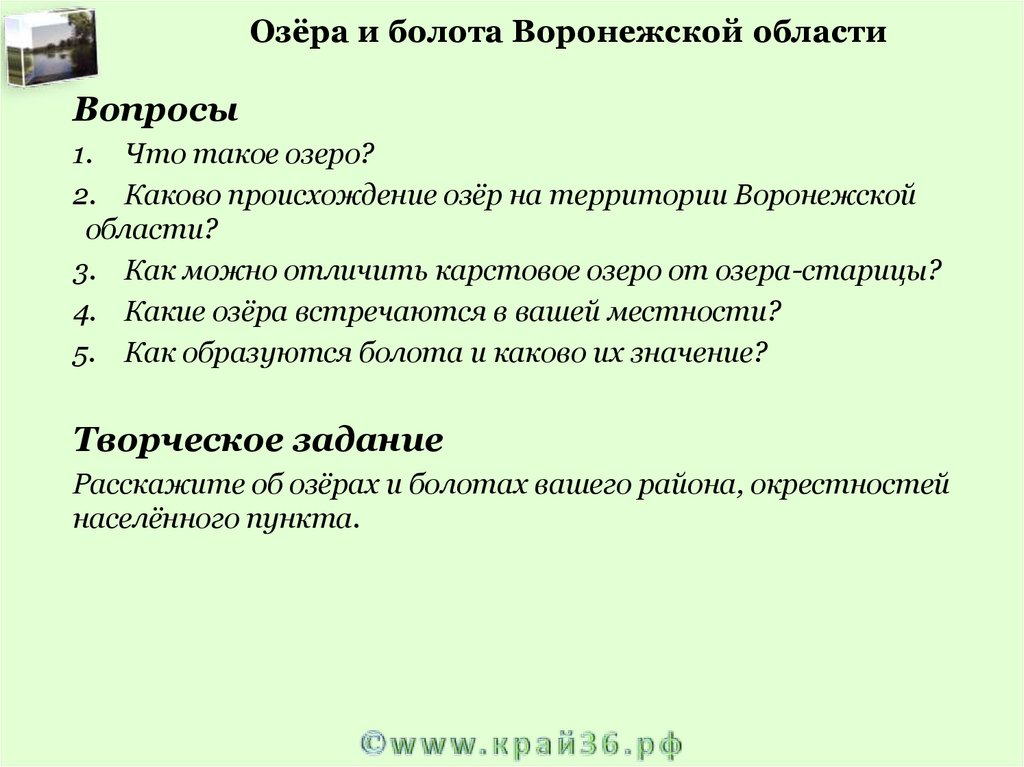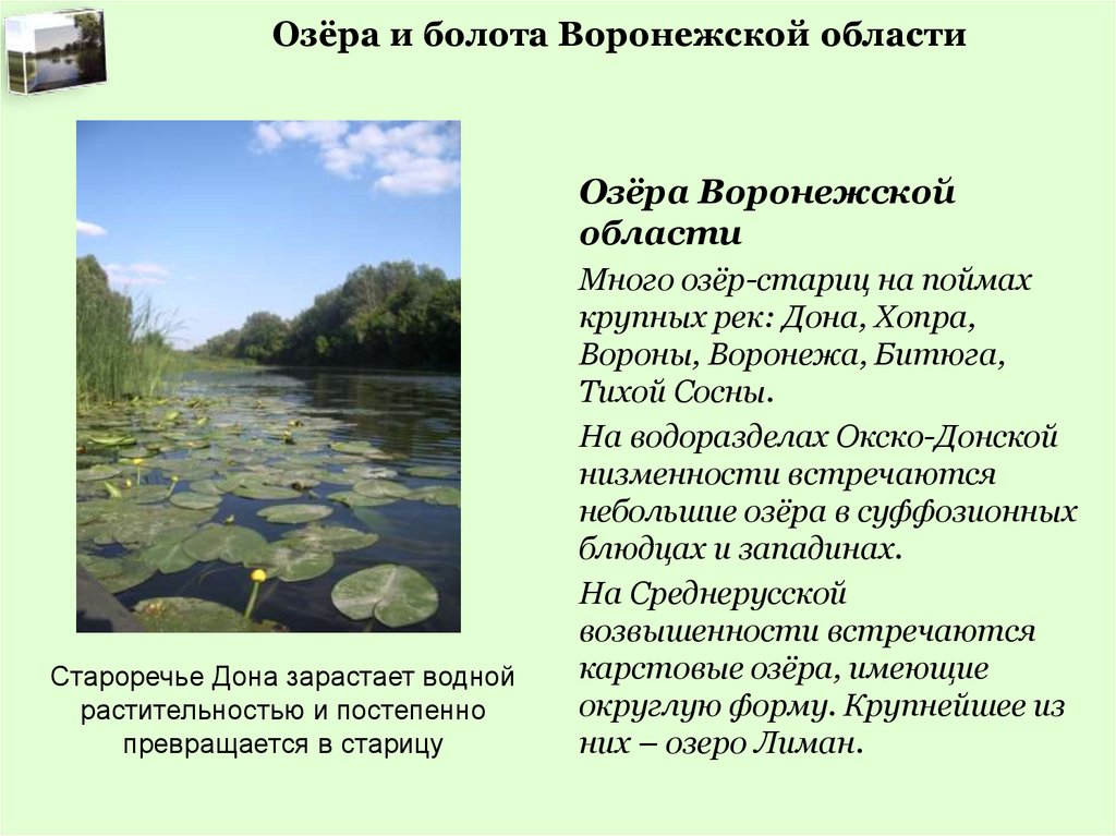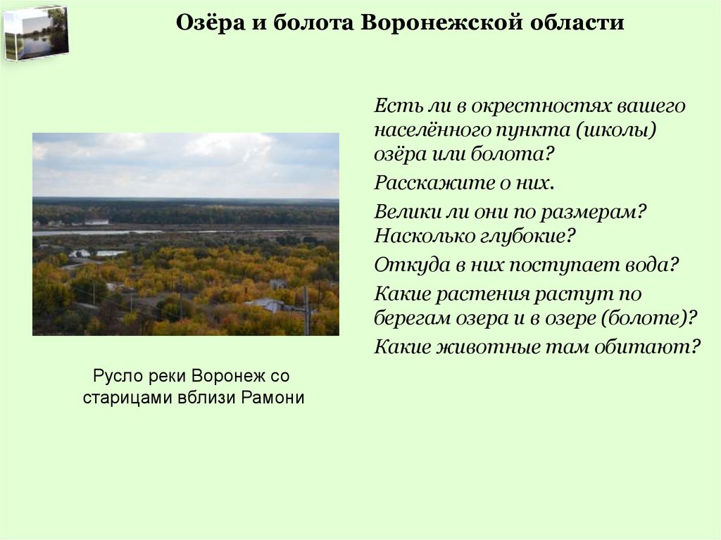 Озёра и болота Воронежской областиВопросы