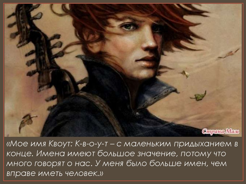 «Мое имя Квоут: К-в-о-у-т – с маленьким придыханием вконце. Имена имеют большое значение, потому что