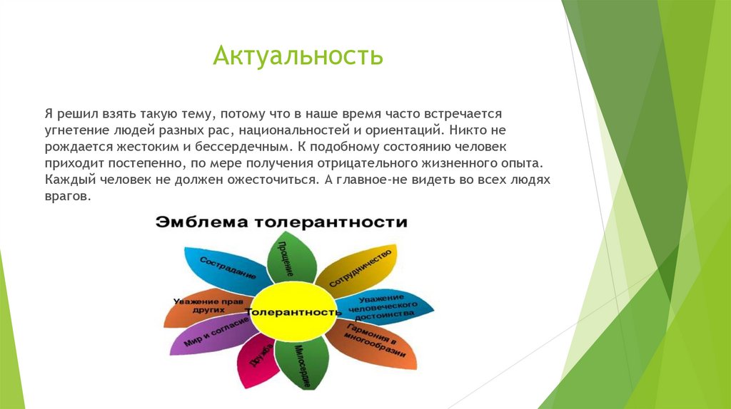 В наше время необходимо быть толерантным, потому что каждый человек