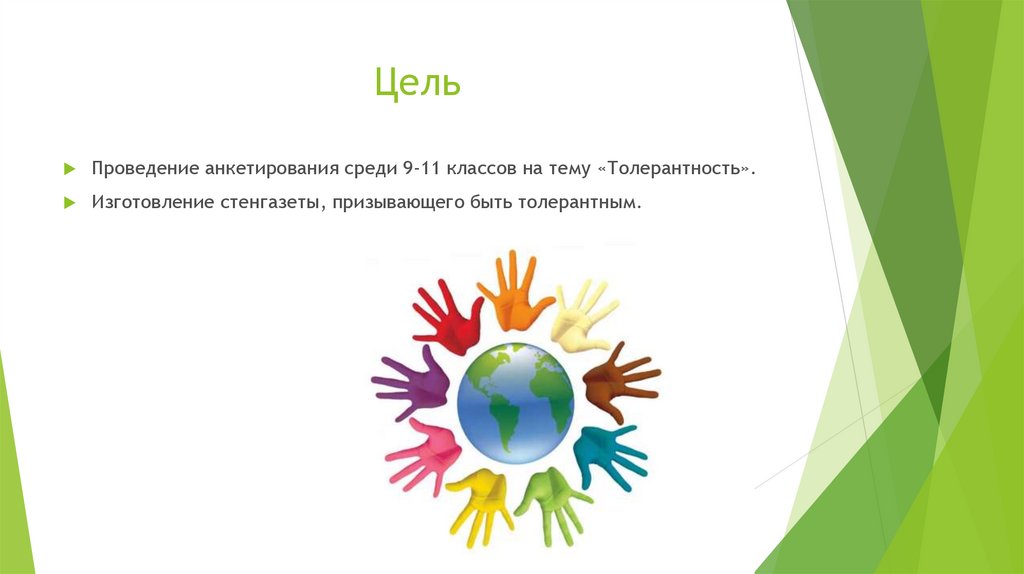 ЦельПроведение анкетирования среди 9-11 классов на тему «Толерантность».