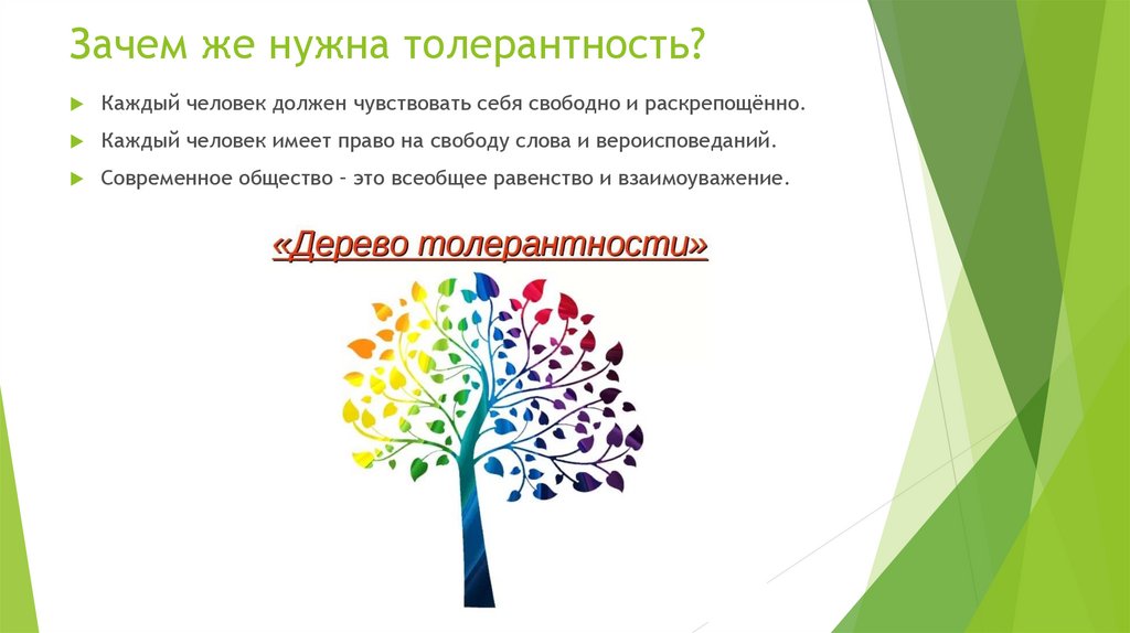Зачем же нужна толерантность?Каждый человек должен чувствовать себя свободно и раскрепощённо.