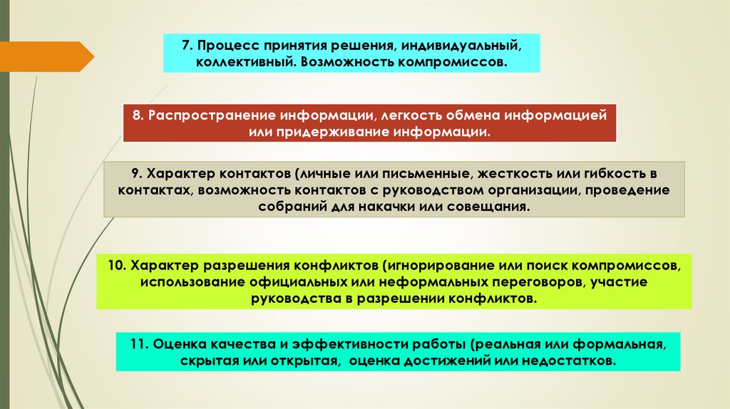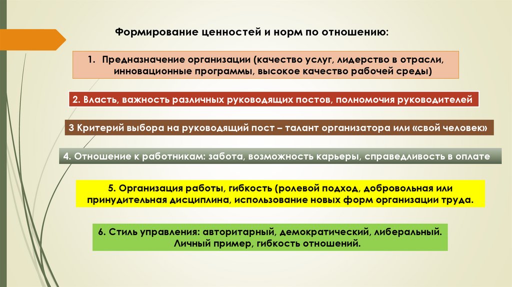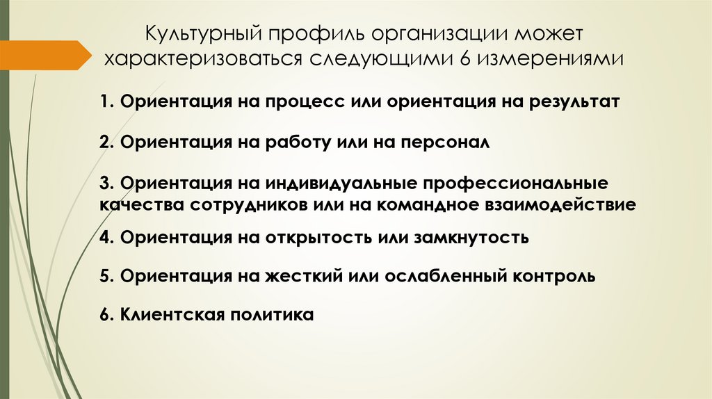 Культурный профиль организации можетхарактеризоваться следующими 6 измерениями