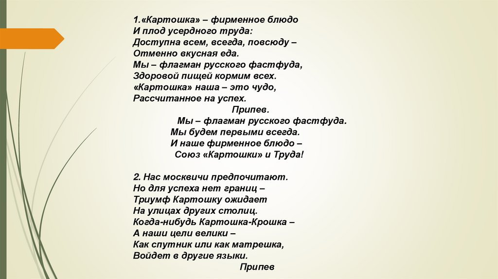 1.«Картошка» – фирменное блюдоИ плод усердного труда: