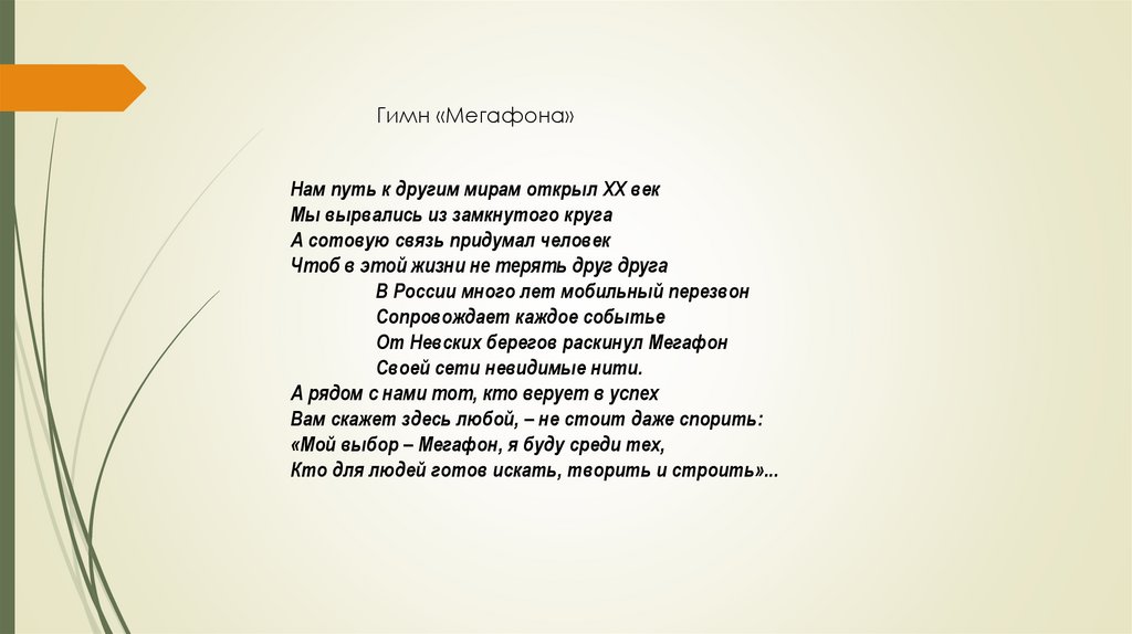 Гимн «Мегафона»Нам путь к другим мирам открыл XX век