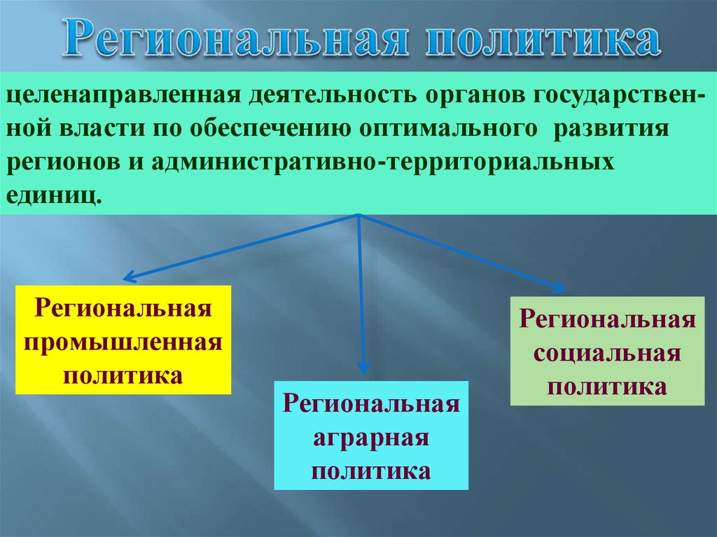 целенаправленная деятельность органов государственной власти по обеспечению оптимального развитиярегионов и административно-территориальных
