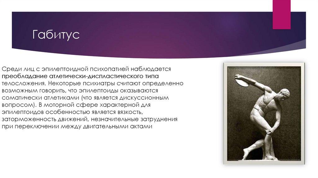 ГабитусСреди лиц с эпилептоидной психопатией наблюдается