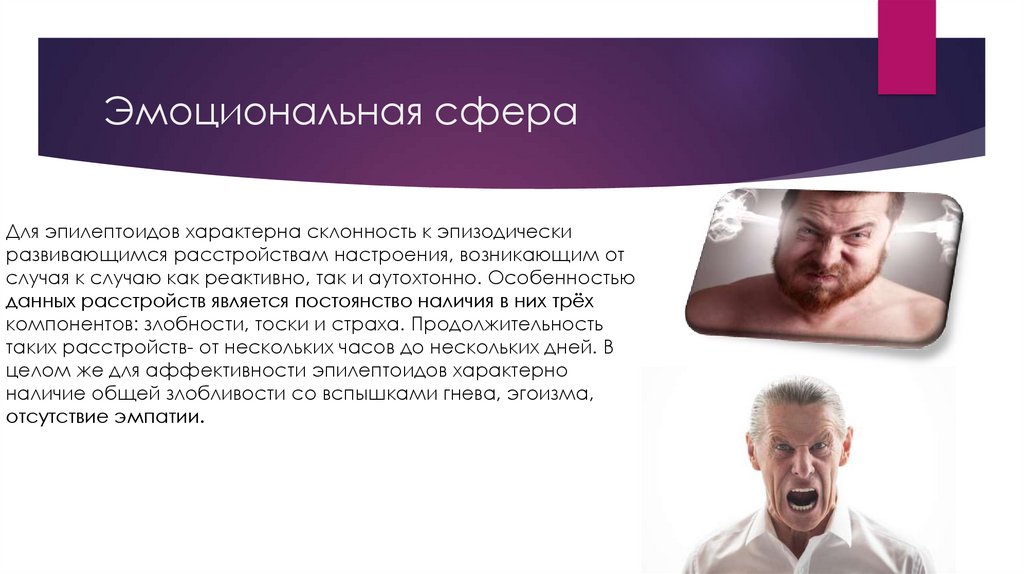 Эмоциональная сфераДля эпилептоидов характерна склонность к эпизодически