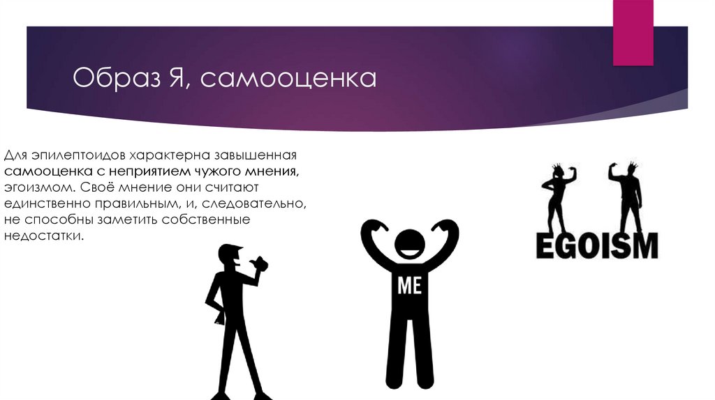 Образ Я, самооценкаДля эпилептоидов характерна завышенная