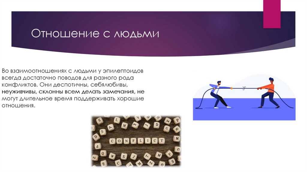 Отношение с людьмиВо взаимоотношениях с людьми у эпилептоидов