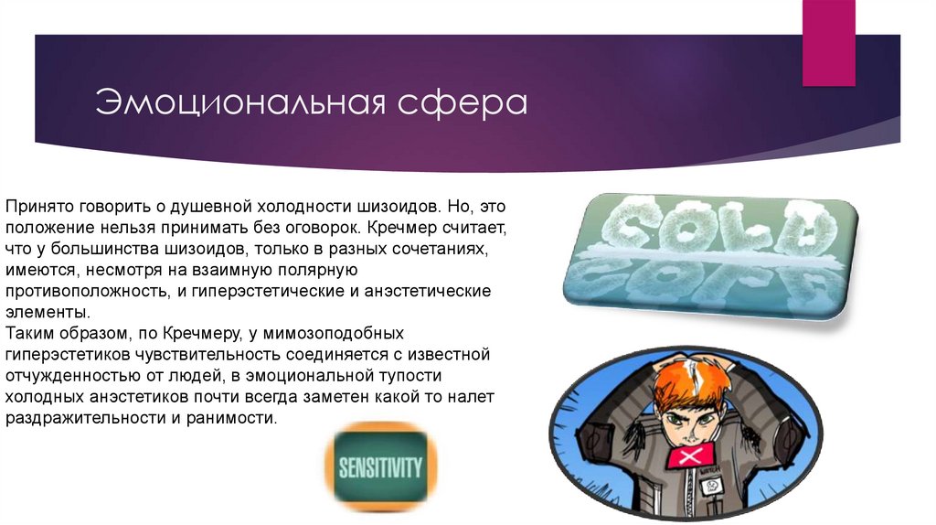 Эмоциональная сфераПринято говорить о душевной холодности шизоидов. Но, это