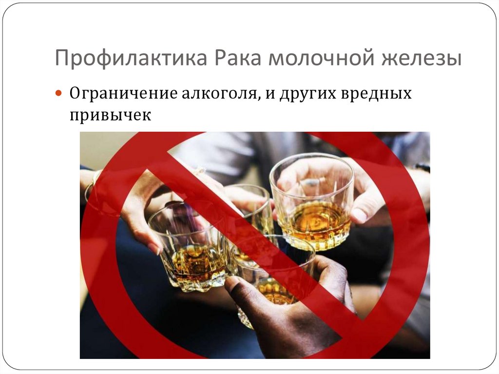 Профилактика Рака молочной железыОграничение алкоголя, и других вредных