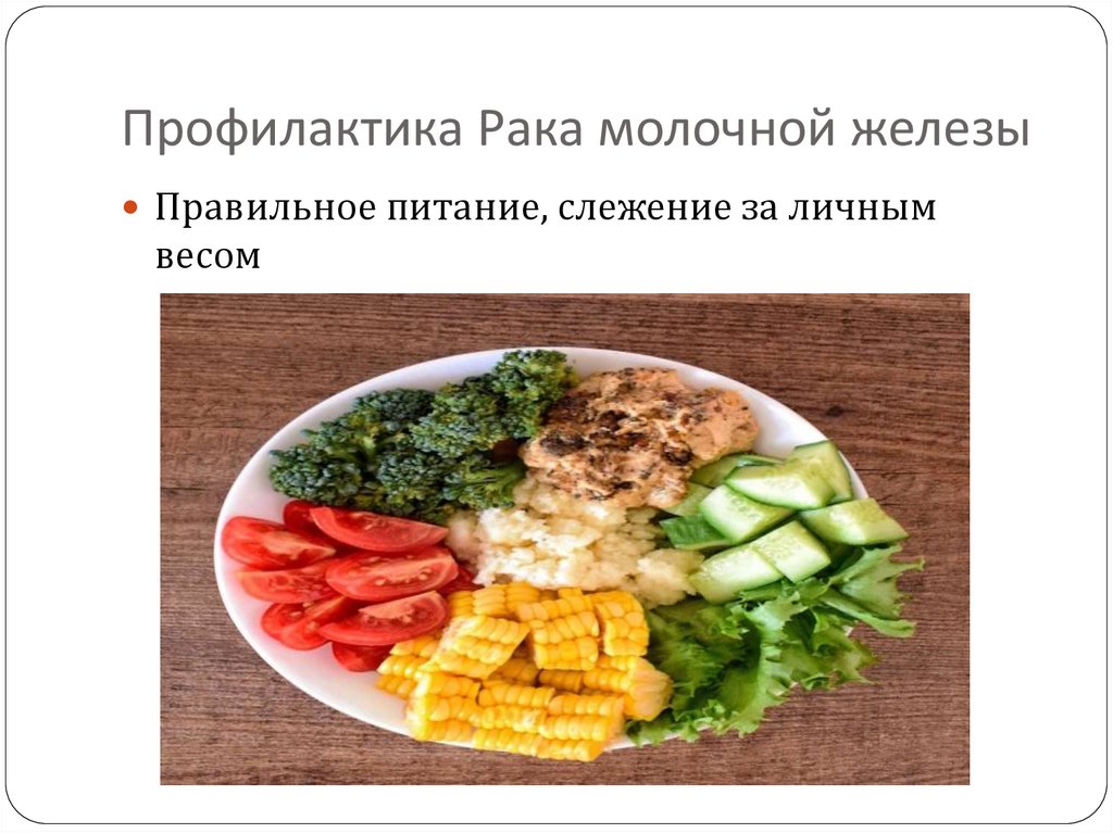 Профилактика Рака молочной железыПравильное питание, слежение за личным