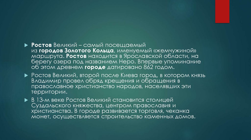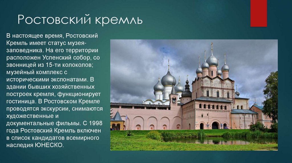 Ростов Великий – самый посещаемыйиз городов Золотого Кольца, именуемый «жемчужиной»