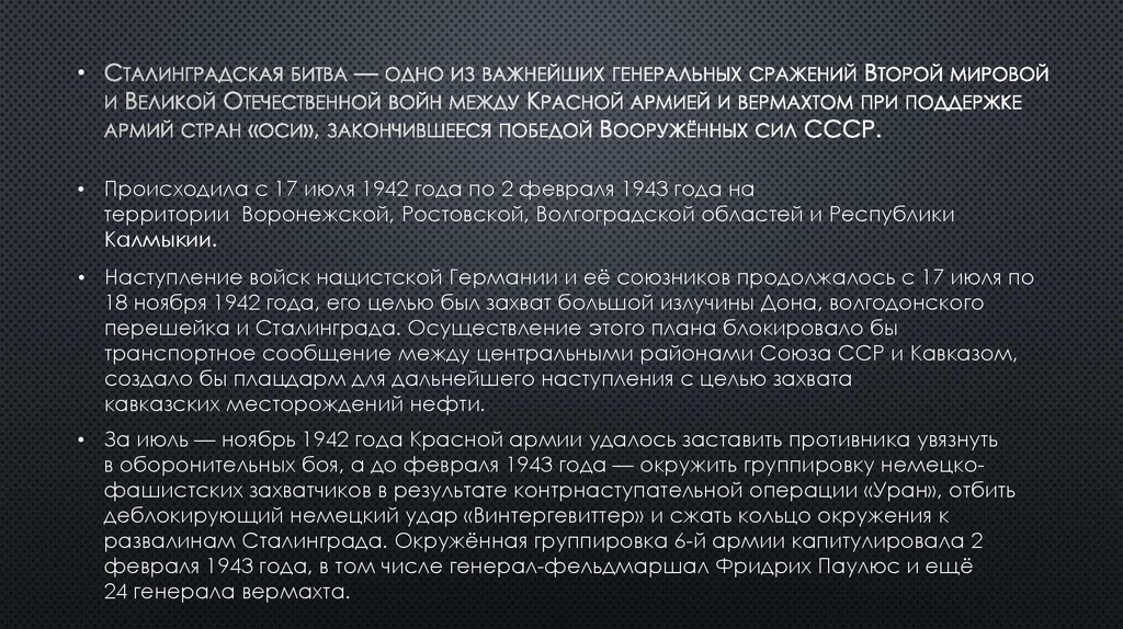 • Происходила с 17 июля 1942 года по 2 февраля 1943 года на