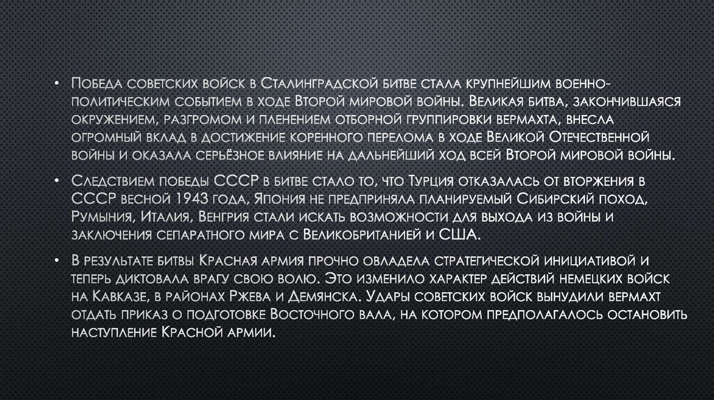 • За июль — ноябрь 1942 года Красной армии удалось заставить противника увязнуть