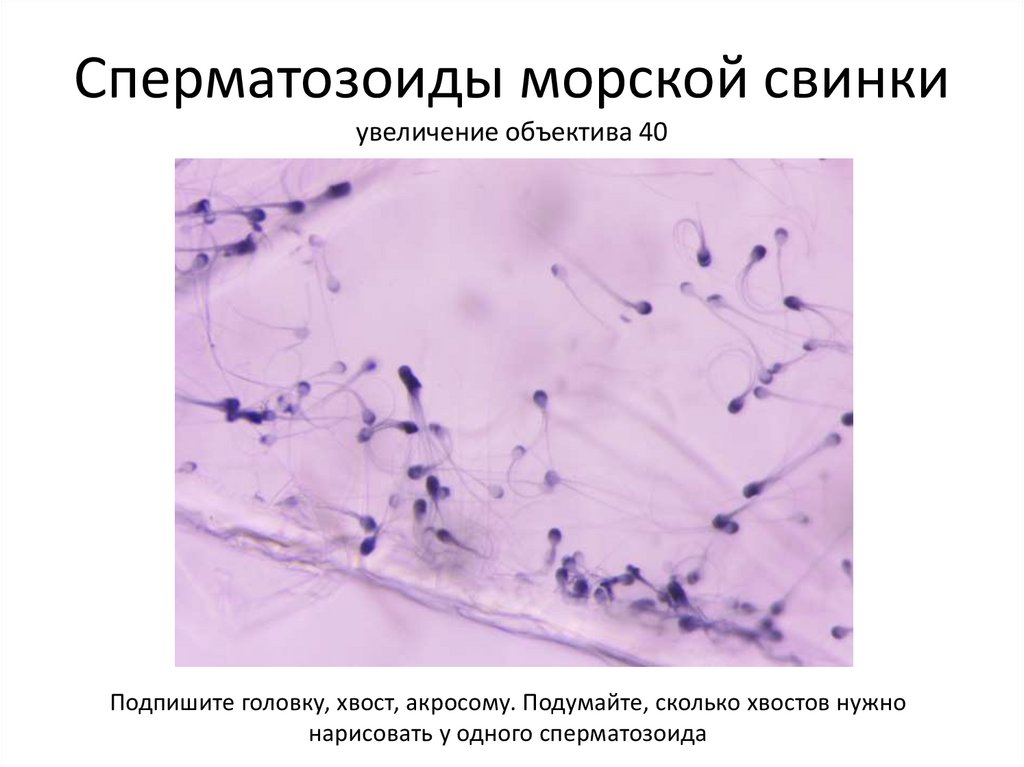 Подпишите головку, хвост, акросому. Подумайте, сколько хвостов нужно