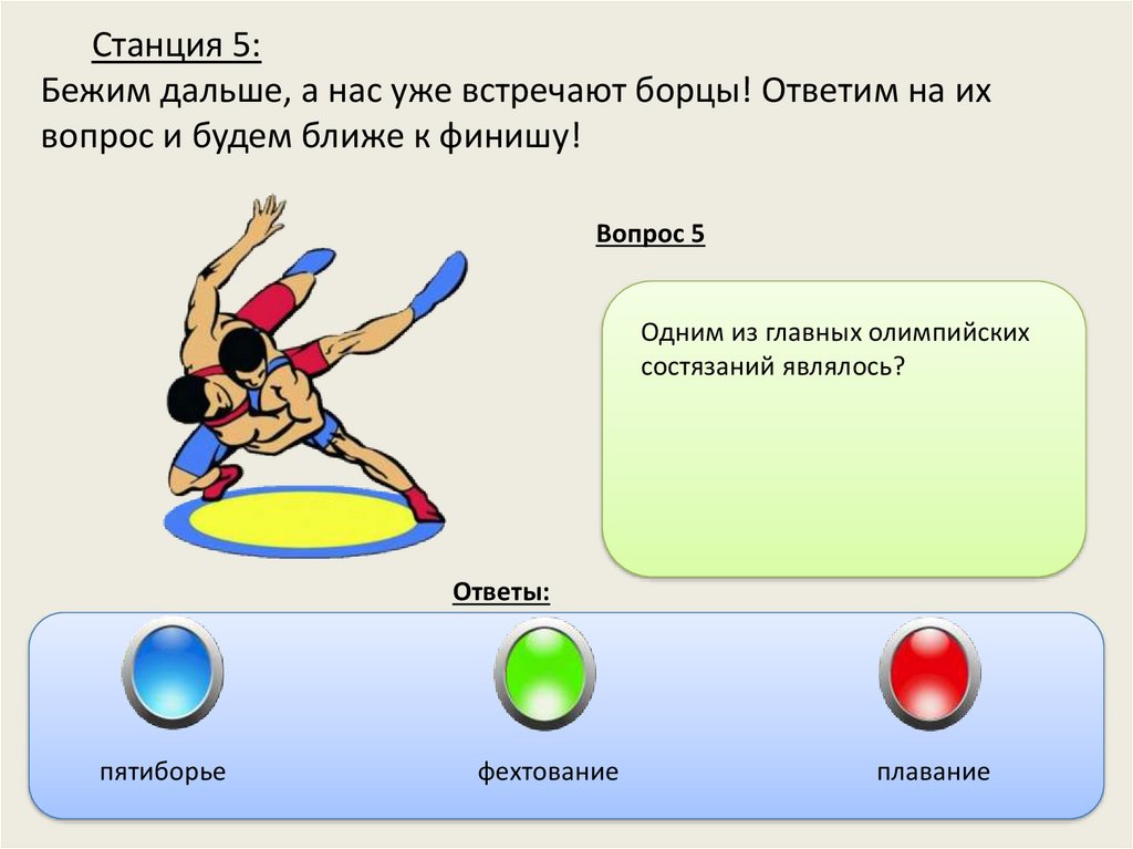 Станция 5:Бежим дальше, а нас уже встречают борцы! Ответим на их