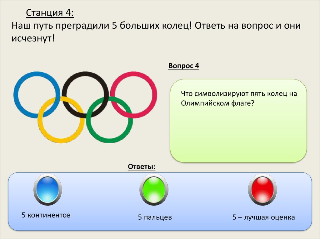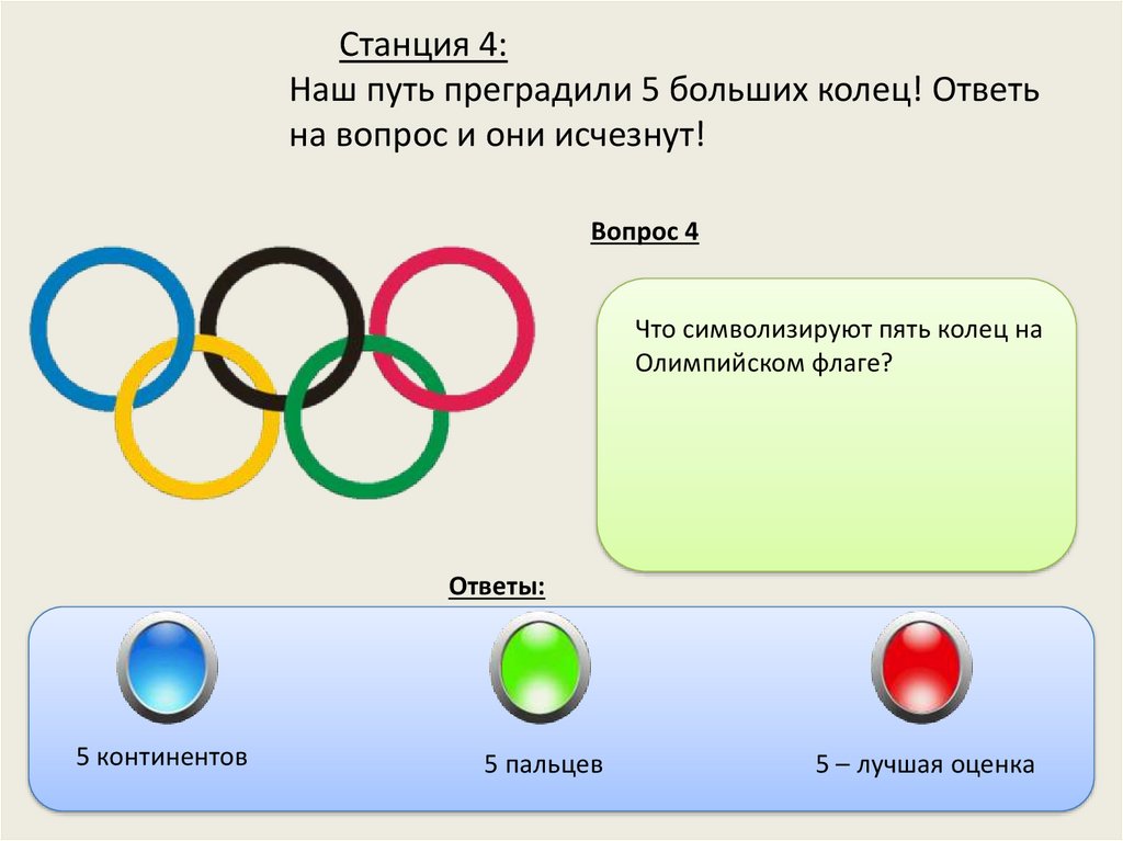 Станция 4:Наш путь преградили 5 больших колец! Ответь на вопрос и они
