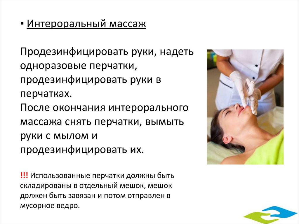 ▪ Интероральный массажПродезинфицировать руки, надеть