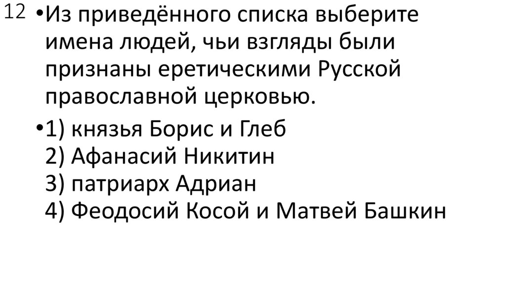 12 •Из приведённого списка выберитеимена людей, чьи взгляды были