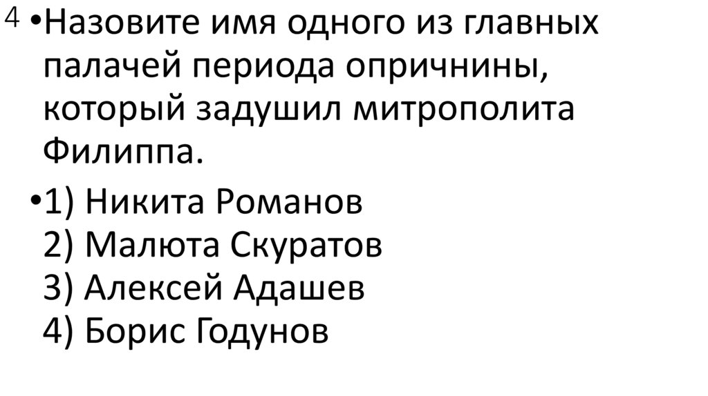 4 •Назовите имя одного из главныхпалачей периода опричнины,
