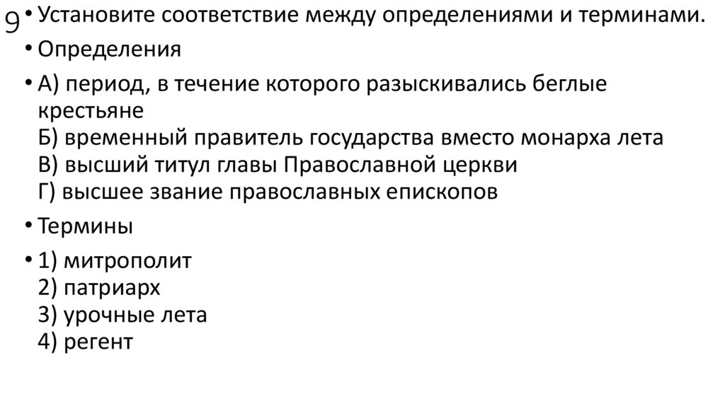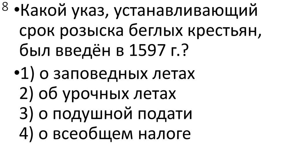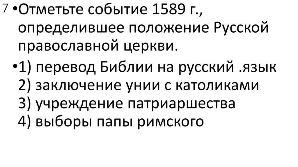 7 •Отметьте событие 1589 г.,определившее положение Русской