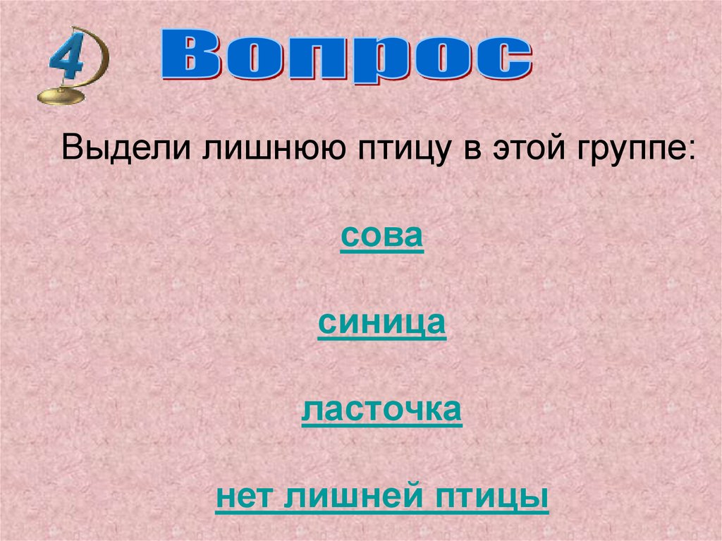 Выдели лишнюю птицу в этой группе:сова