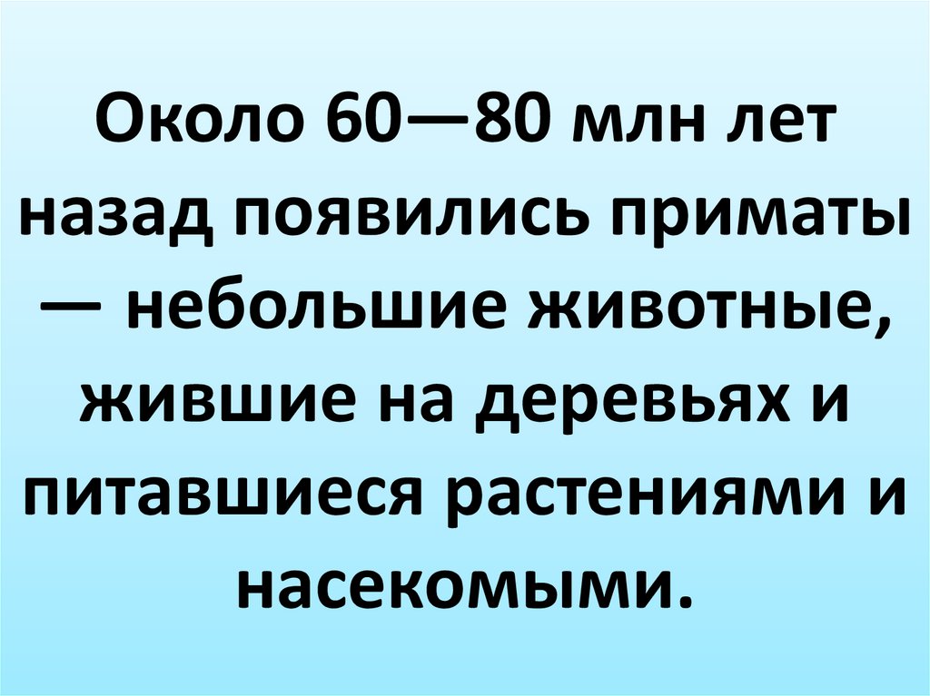 Около 60—80 млн летназад появились приматы