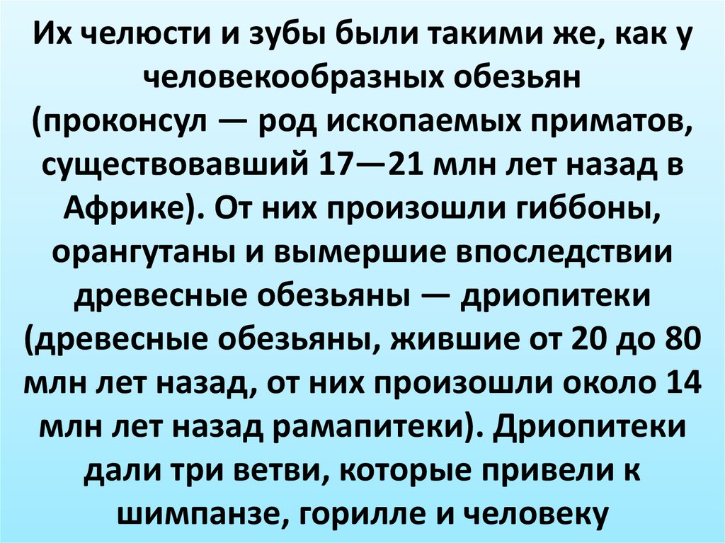 млн лет назад рамапитеки). Дриопитеки