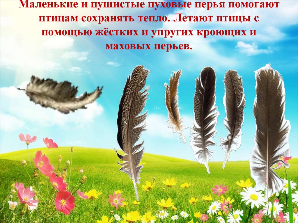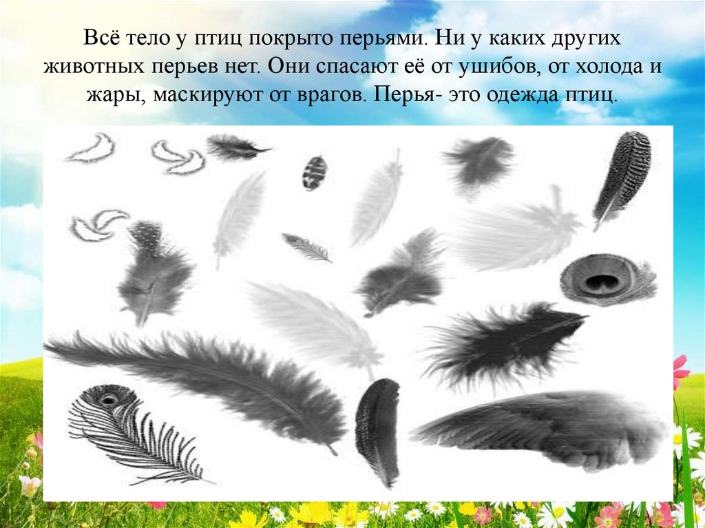 жары, маскируют от врагов. Перья- это одежда птиц.