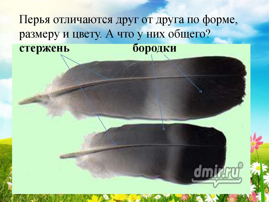 Перья отличаются друг от друга по форме,размеру и цвету. А что у них общего?