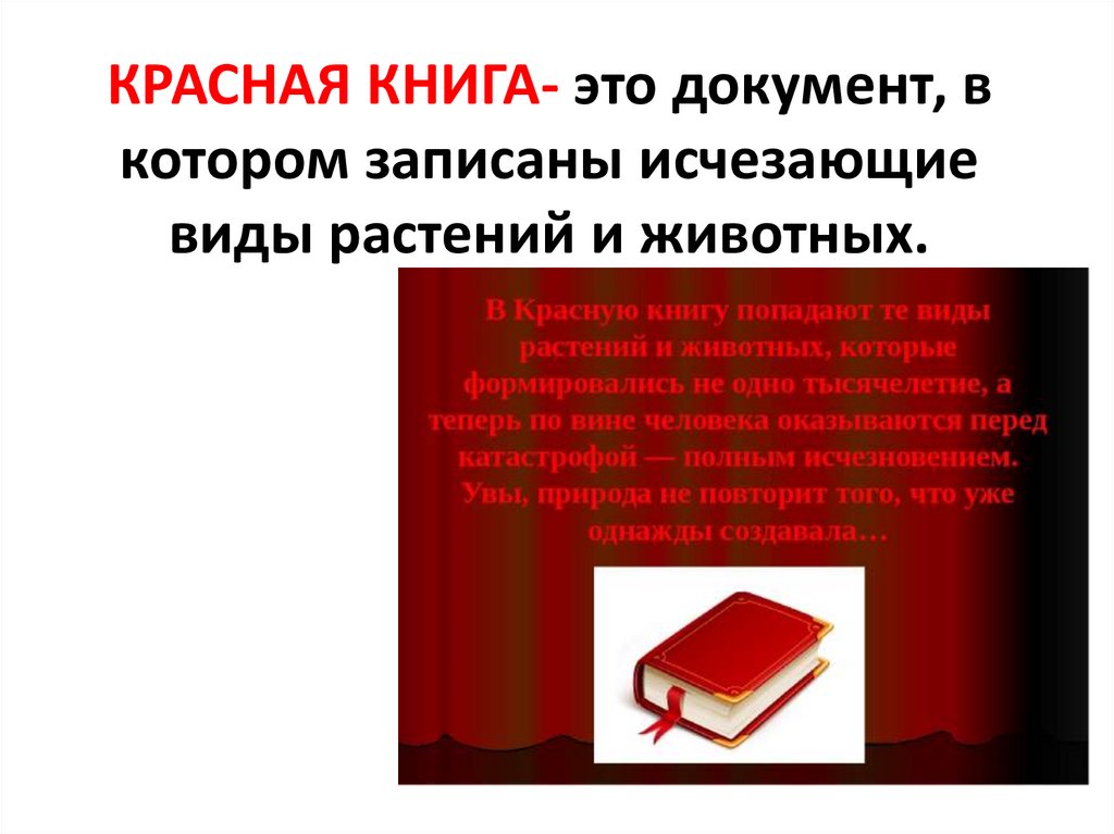 КРАСНАЯ КНИГА- это документ, вкотором записаны исчезающие