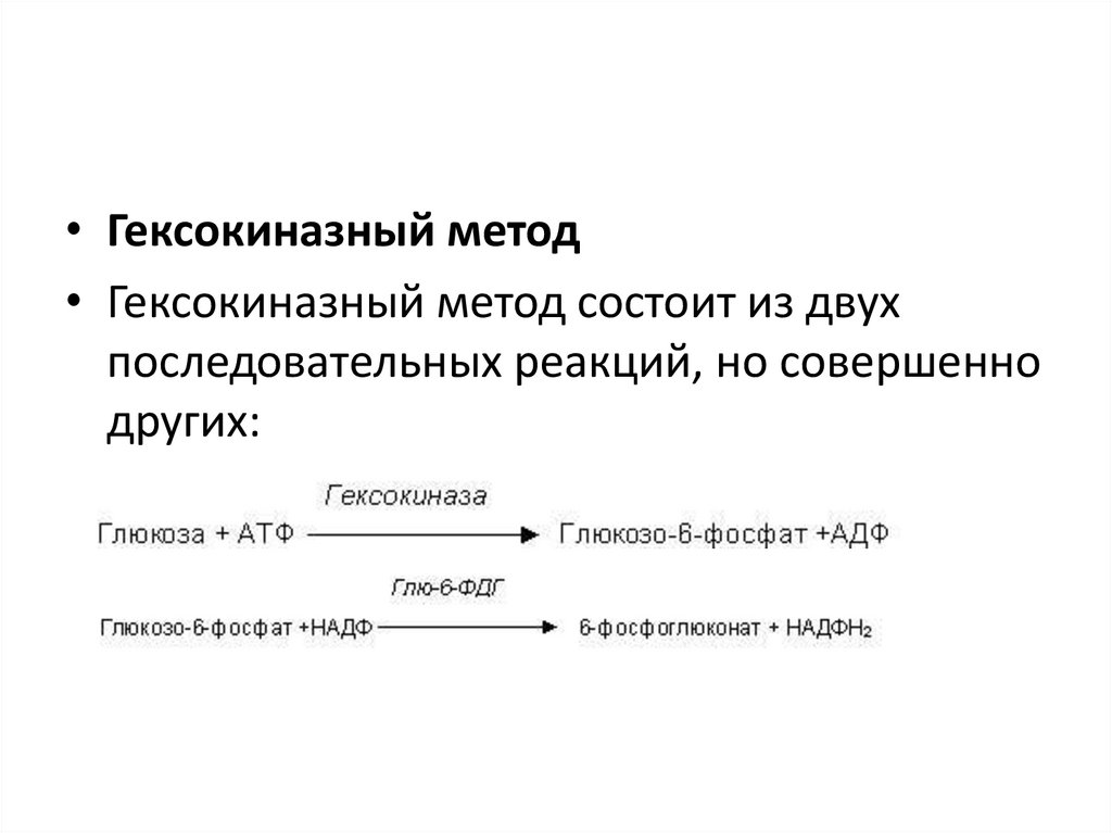 • Гексокиназный метод• Гексокиназный метод состоит из двух