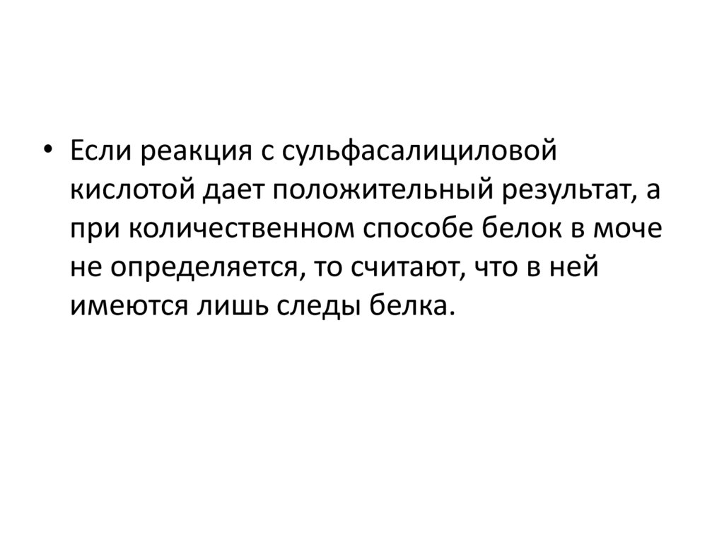 • Если реакция с сульфасалициловойкислотой дает положительный результат, а
