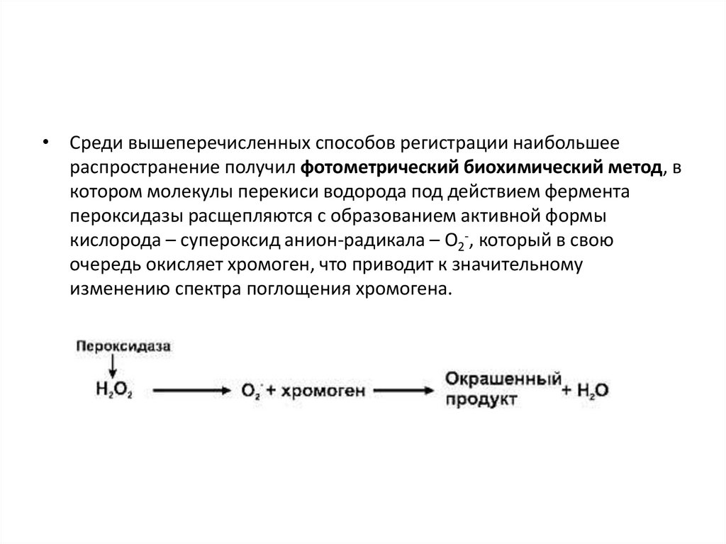 • Среди вышеперечисленных способов регистрации наибольшеераспространение получил фотометрический биохимический метод, в