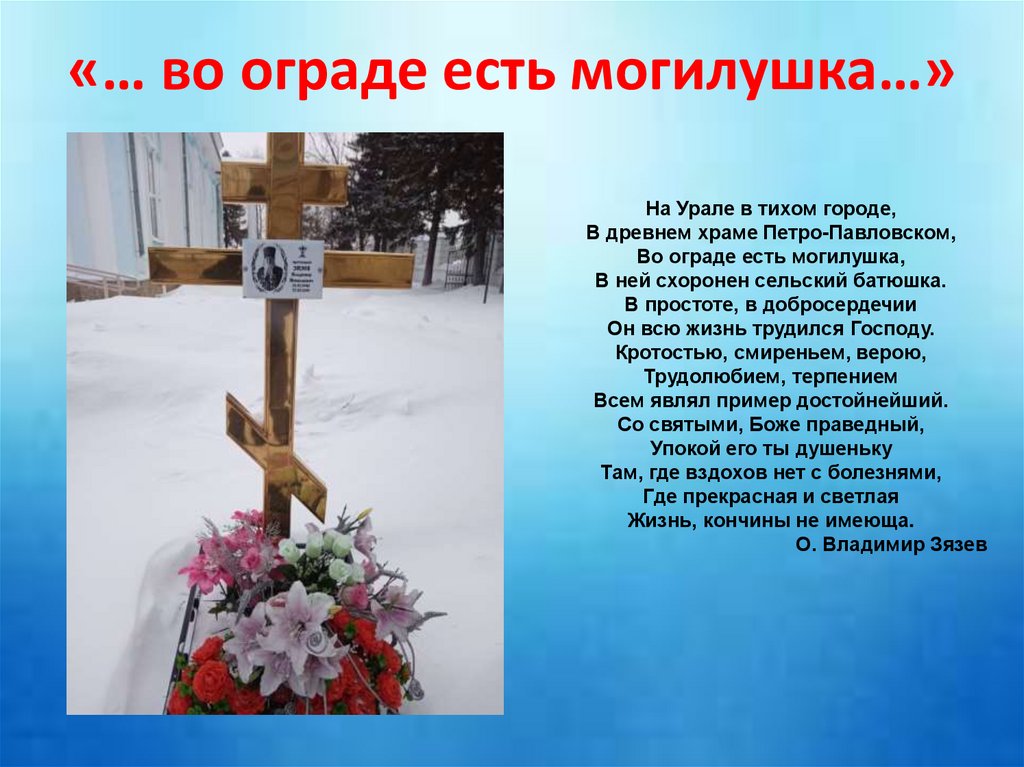 В ней схоронен сельский батюшка.