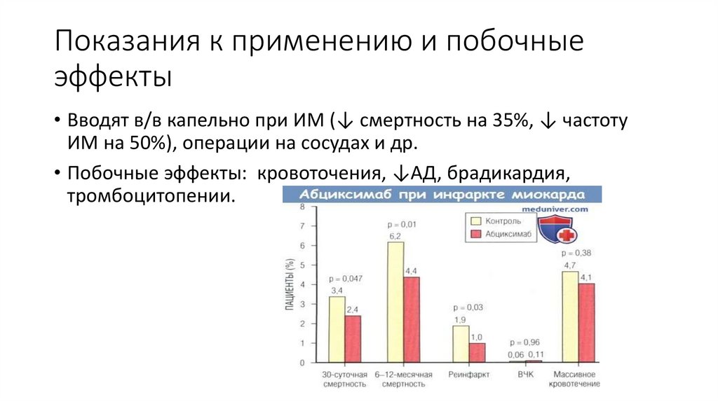 • Вводят в/в капельно при ИМ (↓ смертность на 35%, ↓ частоту