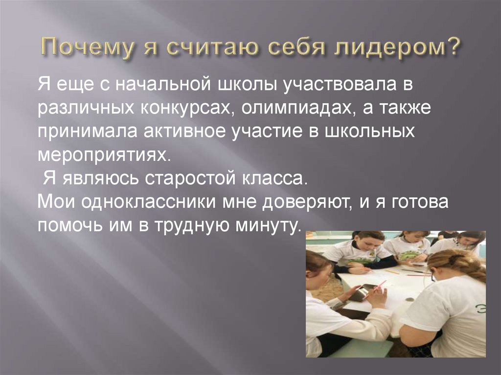 Я еще с начальной школы участвовала вразличных конкурсах, олимпиадах, а также