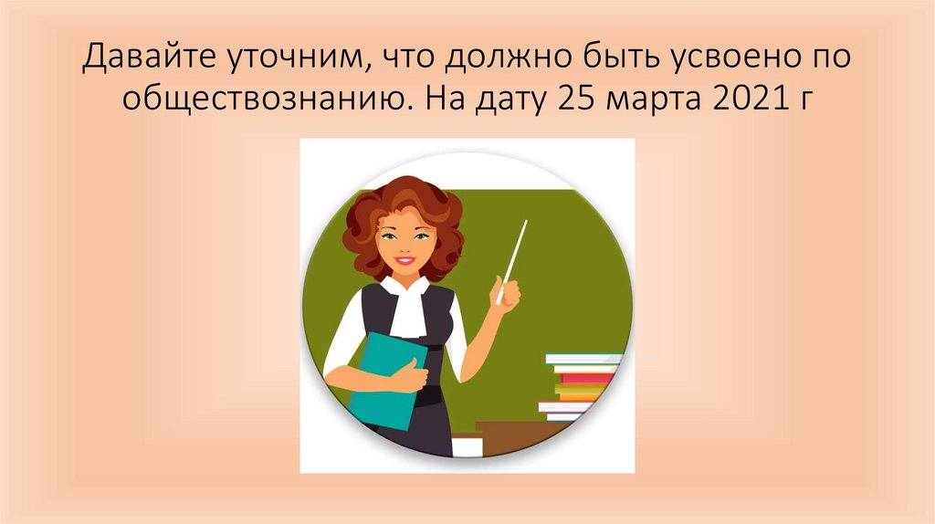 Давайте уточним, что должно быть усвоено пообществознанию. На дату 25 марта 2021 г