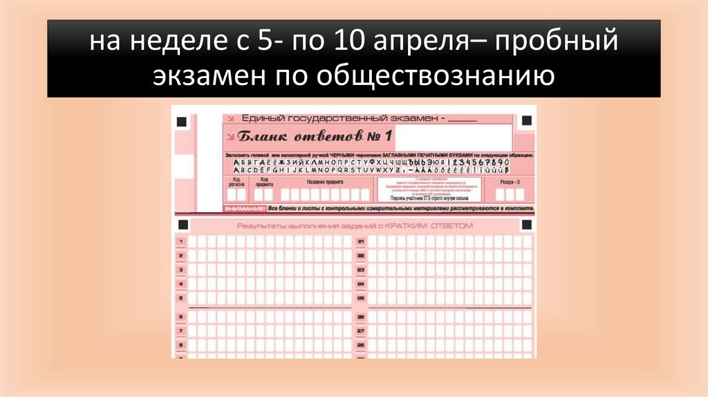 на неделе с 5- по 10 апреля– пробныйэкзамен по обществознанию