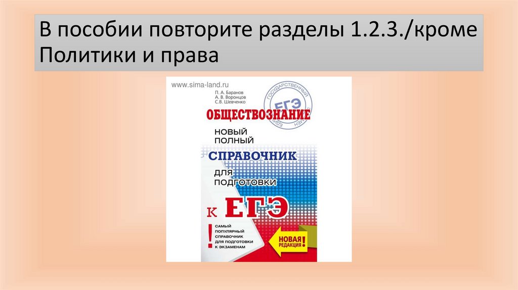 В пособии повторите разделы 1.2.3./кромеПолитики и права
