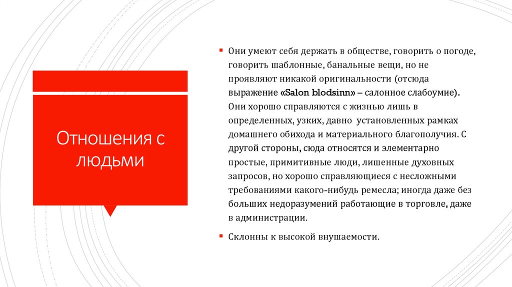 Они умеют себя держать в обществе, говорить о погоде,Отношения с