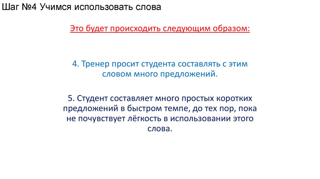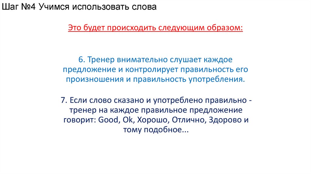 7. Если слово сказано и употреблено правильно тренер на каждое правильное предложение