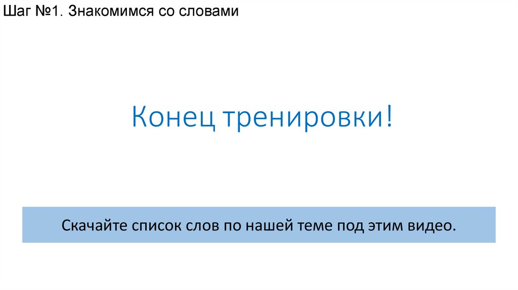 Шаг №1. Знакомимся со словамиКонец тренировки!
