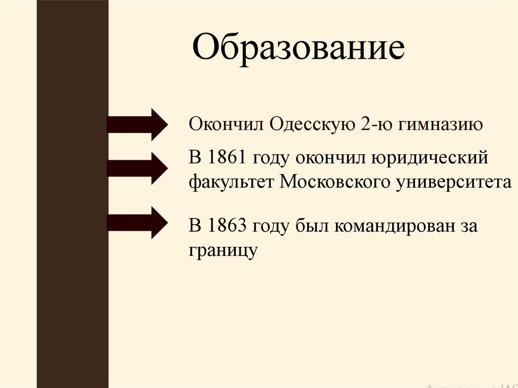 ОбразованиеОкончил Одесскую 2-ю гимназию