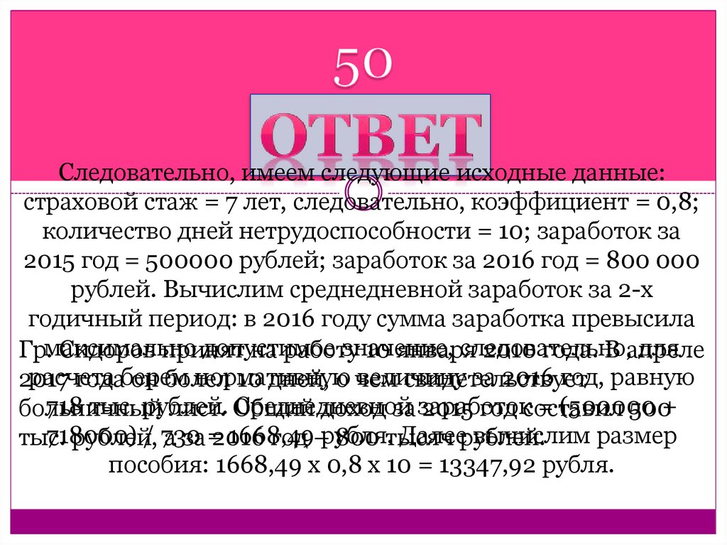 Следовательно, имеем следующие исходные данные:страховой стаж = 7 лет, следовательно, коэффициент = 0,8;
