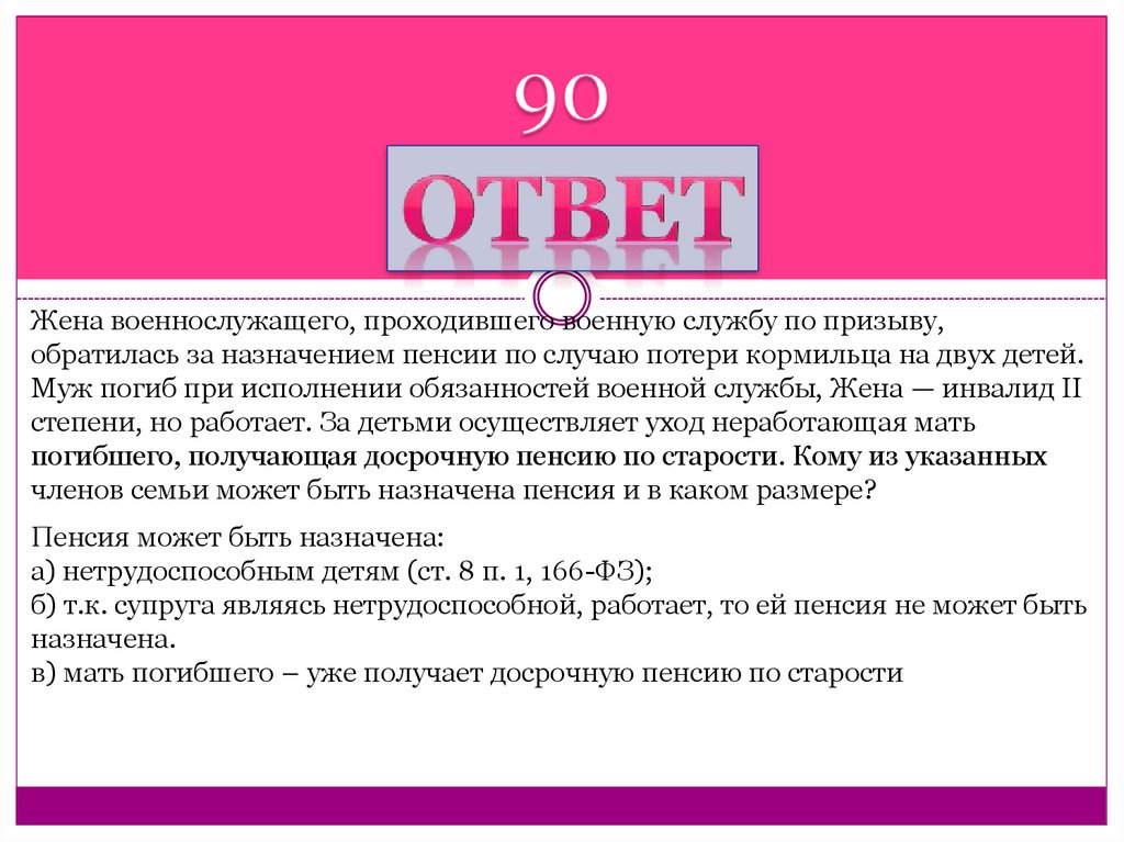 Жена военнослужащего, проходившего военную службу по призыву,обратилась за назначением пенсии по случаю потери кормильца на двух детей.