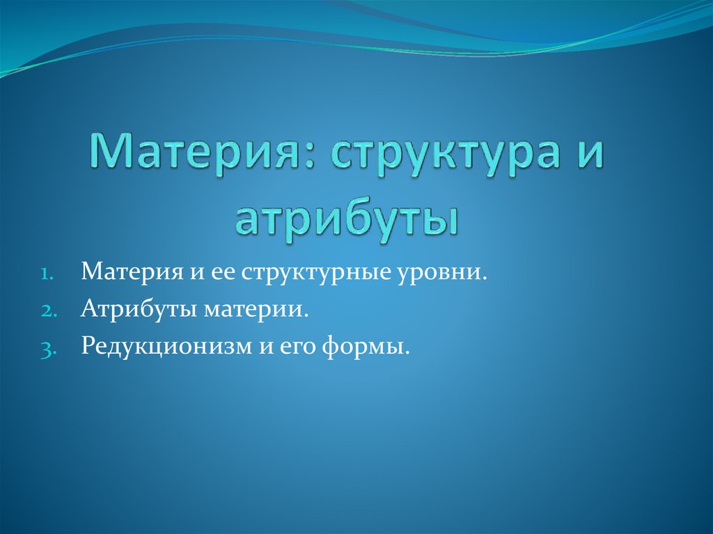 Материя и ее структурные уровни.2. Атрибуты материи.
